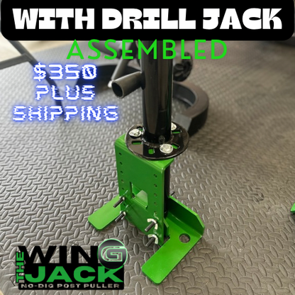 The WingJack is a No-Dig Post Puller used for adjusting post heights or removal of Post Master Plus Post or Lifetime Steel post that have been driven during fence installation. The WingJack comes complete with a 5000lbs capacity drill drive/manual side crank trailer jack combo with WingJack plates. This product is Patent Pending